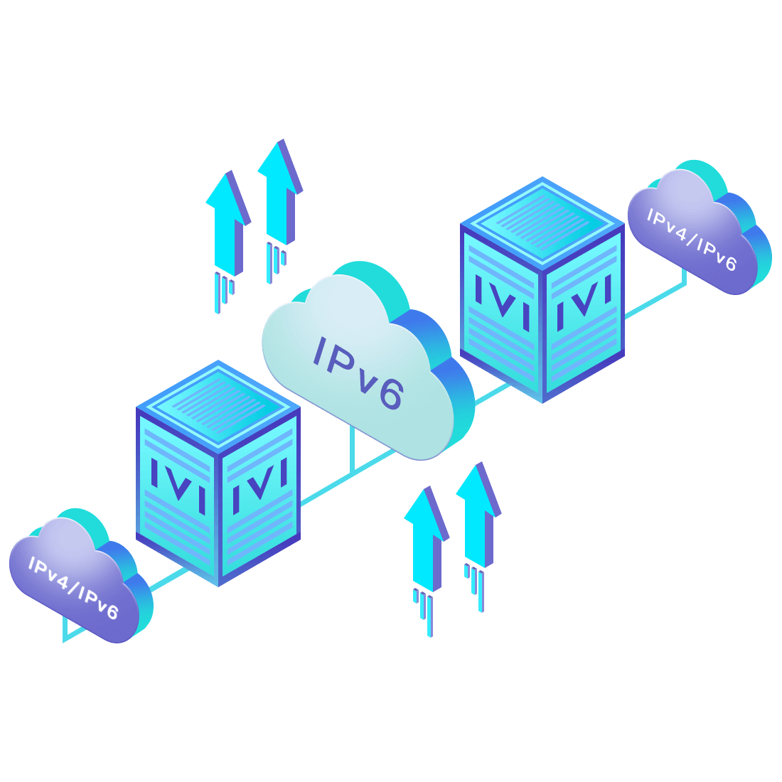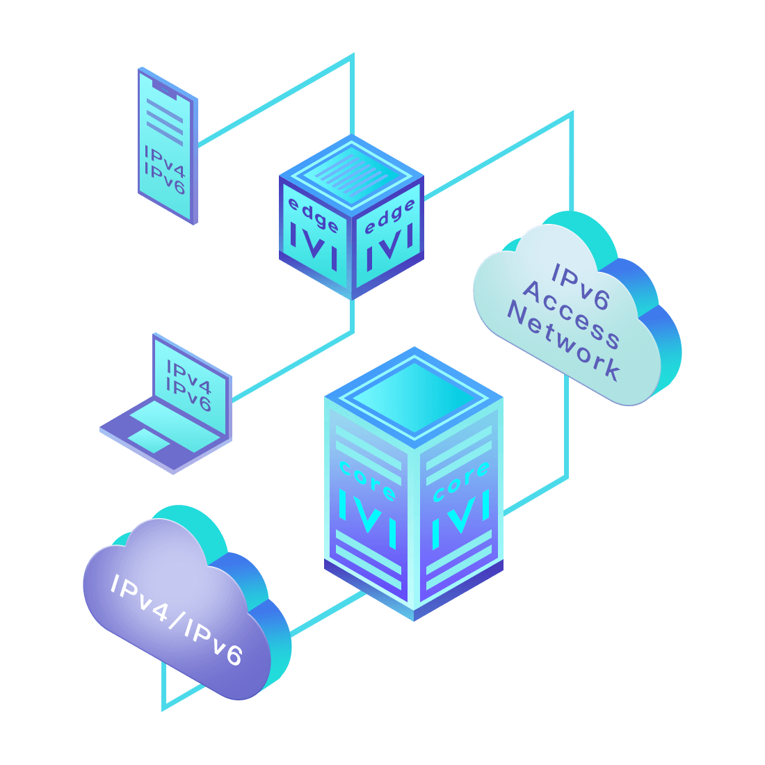 對(duì)正在進(jìn)行IPv6整體升級(jí)規(guī)劃的運(yùn)營(yíng)商,應(yīng)用IPv6升級(jí)方案2.5,通過IVI無(wú)狀態(tài)翻譯技術(shù)和純IPv6接入網(wǎng)絡(luò),為雙棧客戶端和雙棧服務(wù)器提供連通服務(wù)。